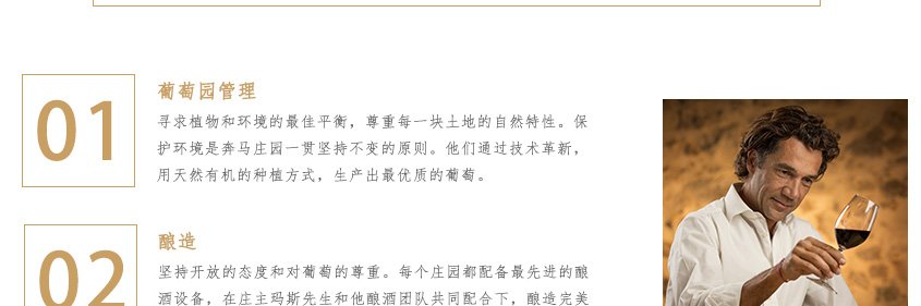 味蕾:酒體圓潤飽滿,口感柔和,平衡感極佳,果香濃郁,余味悠長。