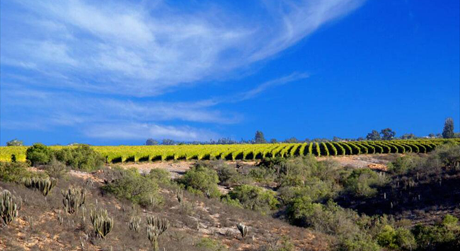 明朗如鏡的天空,映襯著連綿起伏的山丘,偶爾可見仙人掌、山楂樹和其它一些低矮的灌木叢,而在山谷之地,卻分布著成片的葡萄園,綠色的葡萄葉、黃色的土地與藍色的天空交相輝映,這就是阿塔卡馬沙漠(Atacama Desert)南部的風光,著名的利馬里谷(Limari Valley)產區便坐落于此。