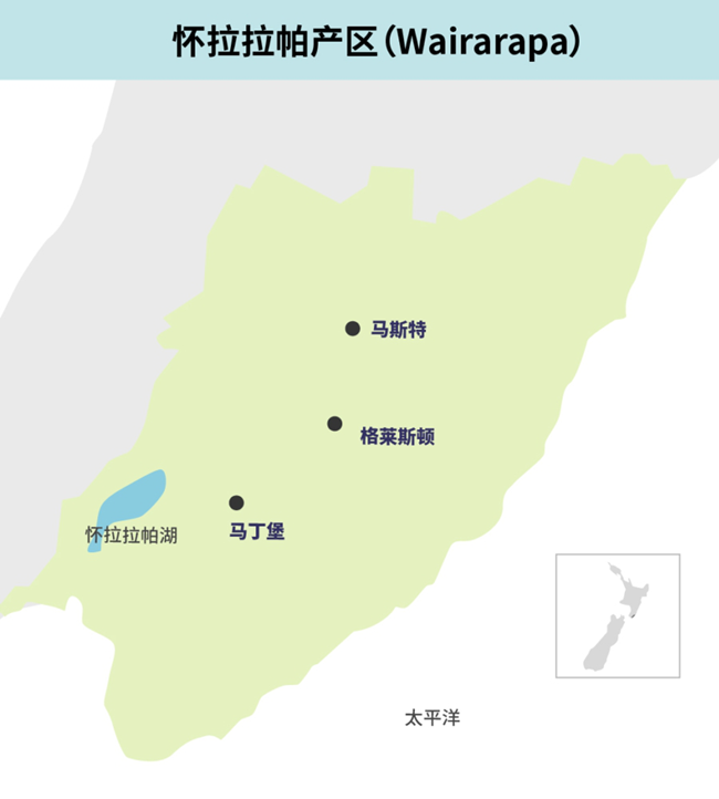 懷拉拉帕由北部的馬斯特(Masterton)、中部的格萊斯頓(Gladstone)和南部的馬丁堡(Martinborough)組成,其中馬丁堡是優(yōu)秀典范,名莊輩出,知名度甚廣。