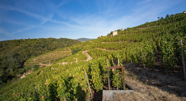 維歐尼是孔得里約產(chǎn)區(qū)唯一的法定品種,在這里有著悠久的種植歷史。這一品種果皮厚,酸度較低,培育難度較大,需要大量陽光才能成熟,然而陽光和熱量過多,又會(huì)使葡萄酒酒精度過高,缺乏清新感。同時(shí),維歐尼葡萄酒中的許多香氣需要在發(fā)酵過程中酒精度達(dá)13%abv之后才能發(fā)展出來,因此需要十分注意葡萄的采摘時(shí)間并嚴(yán)格把控酒精發(fā)酵的進(jìn)程,以釀出風(fēng)味豐富美妙、同時(shí)兼具清新感的佳釀。