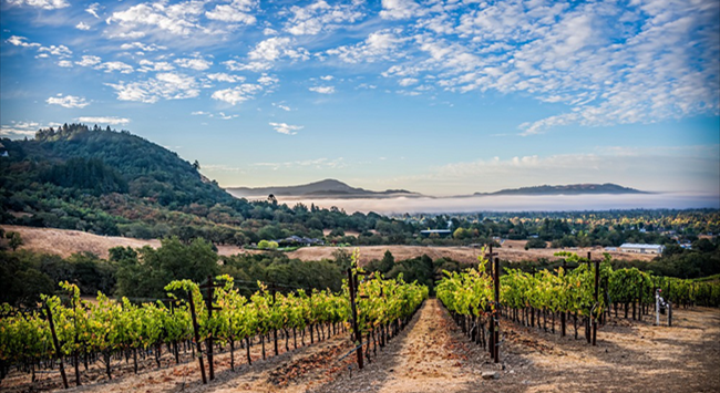 美國的納帕谷產(chǎn)區(qū)坐落于加利福尼亞州的圣帕布羅灣(San Pablo Bay)以北,位于北緯39°左右,氣候較為炎熱。加利福尼亞洋流帶來的降溫作用調(diào)節(jié)了緯度帶來的過高溫度,使納帕谷擁有赤霞珠生長的理想氣候。