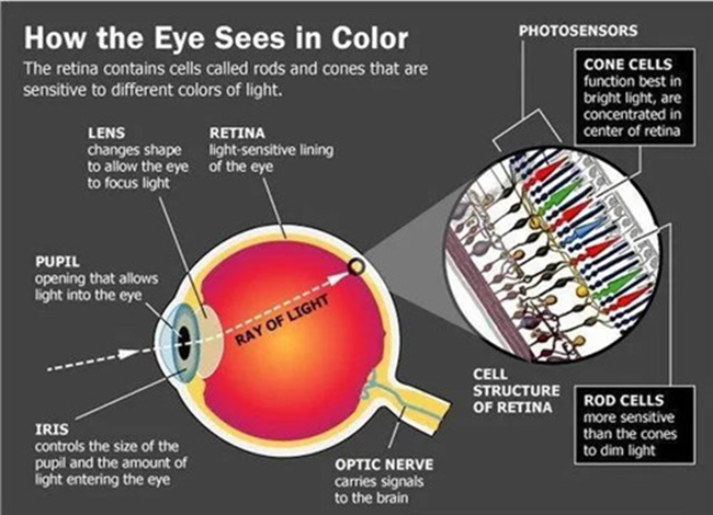 以人們看到顏色為例——萬物本身沒有顏色,而只是光線照射到物體上后反射到眼睛,再刺激大腦回路的產生的效果。
