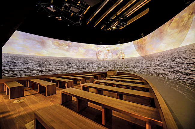 這是一個(gè)虛擬的宴會(huì),但參觀者卻擁有身臨其境的感覺,仿佛自己與丘吉爾(Churchill)、托馬斯·杰斐遜(Thomas Jefferson)和拿破侖(Napoleon)等世界偉人同坐在一桌宴席上,傾聽他們講述自己對(duì)葡萄酒的見解。