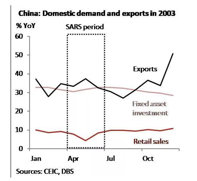 星展集團(DBS Group)的報告指出,2003年SARS疫情爆發(fā)期間零售銷售遭到很大的打擊,但疫情過后短時間內消費就有很大的反彈。可以預見,新冠疫情結束之后,經營良好的企業(yè)將趁著消費反彈的大勢蠶食原本屬于健康度不佳的企業(yè)的份額。