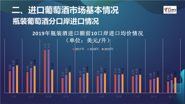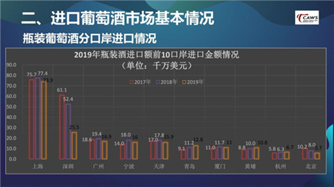 在仔細(xì)分析口岸數(shù)據(jù)后就會(huì)發(fā)現(xiàn),深圳由2018年的5.24億美元,迅速下滑到2019年的2.55億美元。我認(rèn)為這與2018年,深圳口岸由于種種原因進(jìn)口了大量的高端酒、奢侈酒有關(guān)。進(jìn)一步去想,2019年整個(gè)大盤下跌15%,受高端酒、奢侈酒的影響較大,整個(gè)市場(chǎng)其實(shí)并沒(méi)有受到過(guò)多沖擊。