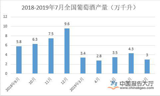 葡萄酒行業(yè)分析表示,根據(jù)國家統(tǒng)計(jì)局最新數(shù)據(jù)顯示,2018年全年全國葡萄酒產(chǎn)量達(dá)到了62.9萬千升,累計(jì)下降7.4%。截止至2019年6月全國葡萄酒產(chǎn)量為4.3萬千升,同比下降6.5%。累計(jì)方面,2019年1-6月全國葡萄酒產(chǎn)量達(dá)到24.5萬千升,累計(jì)下降19.9%。