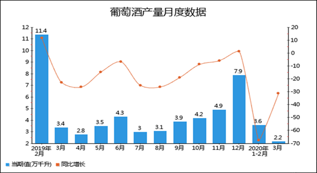 2020年1-3月全國葡萄酒產(chǎn)量分月數(shù)據(jù)