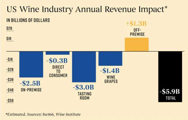 根據(jù)美國(guó)葡萄酒行業(yè)專家Jon Moramarco發(fā)布的報(bào)告顯示,受疫情影響,美國(guó)超過10000個(gè)酒莊和8000多個(gè)葡萄種植者在2020年收入損失可能達(dá)到59.4億元。