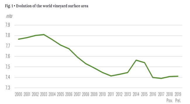 此外,與2018年相比,西班牙(966000公頃)、匈牙利(69000公頃)和奧地利(48000公頃)的葡萄園表面積略有下降。羅馬尼亞(191000公頃)和德國(guó)(103000公頃)的情況已經(jīng)穩(wěn)定下來(lái)。