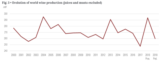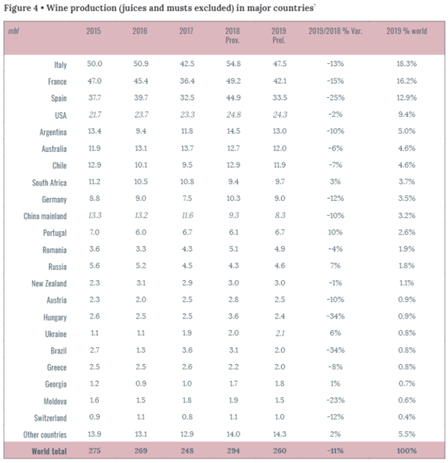 總體而言,在連續(xù)兩年被定義為極度動(dòng)蕩之后,2019年使全球葡萄酒產(chǎn)量回到平均水平。