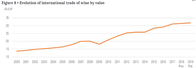 (2000—2019葡萄酒國(guó)際貿(mào)易價(jià)值的演變)