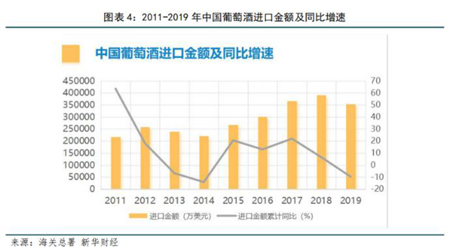 2019年中國(guó)葡萄酒進(jìn)口金額35.36億美元,同比下降9.7%;進(jìn)口數(shù)量66.23萬(wàn)千升,同比下降9.2%。雖然進(jìn)口葡萄酒量額雙降,且降幅較大,但較國(guó)產(chǎn)葡萄酒而言,仍維持較高發(fā)展水平。北京百利生葡萄酒業(yè)總經(jīng)理吳一白認(rèn)為,進(jìn)口葡萄酒的下滑趨勢(shì)是階段性的,未來(lái)個(gè)人消費(fèi)的增長(zhǎng)會(huì)適當(dāng)彌補(bǔ)商務(wù)/社交消費(fèi)被抑制的部分,進(jìn)口葡萄酒消費(fèi)仍占主流,其消費(fèi)量回升可期。