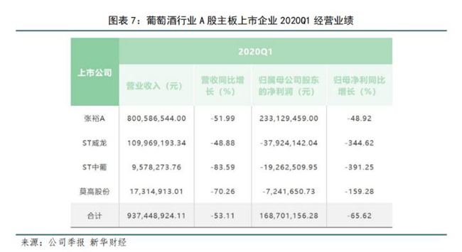 新冠肺炎疫情對(duì)于本就脆弱的葡萄酒行業(yè)來(lái)講,無(wú)疑是一記重錘。2020年第一季度,四家葡萄酒企業(yè)總營(yíng)收9.37億元,同比降低53.11%;實(shí)現(xiàn)歸母凈利1.69億元,同比降低65.62%。只有張?jiān)R患覛w母凈利維持正值,其余皆為虧損。業(yè)內(nèi)人士曾表示“葡萄酒行業(yè)'短期不樂(lè)觀',2020年將是國(guó)內(nèi)葡萄酒市場(chǎng)近十年來(lái)最艱難的一年。”