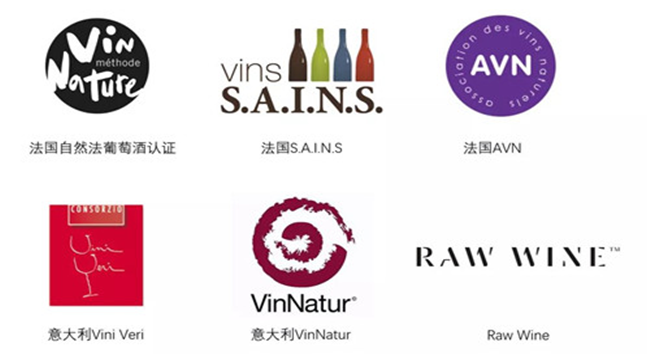 除左上角法國自然法葡萄酒認證標識為官方認證外,其余均為自然酒聯(lián)盟組織