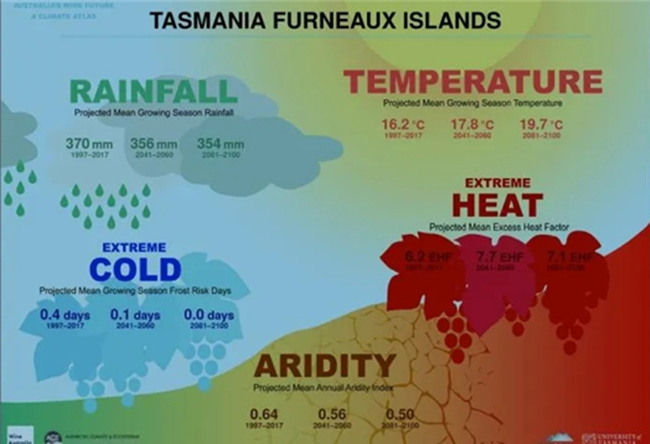 塔斯馬尼亞大學(xué)氣候?qū)W專家麗貝卡·哈里斯博士(Dr Rebecca Harris)表示,發(fā)行這本地圖冊目標(biāo)是為澳大利亞葡萄酒生產(chǎn)商提供詳細(xì)的氣候預(yù)測,這本地圖冊是為葡萄酒產(chǎn)業(yè)“量身定做”的。