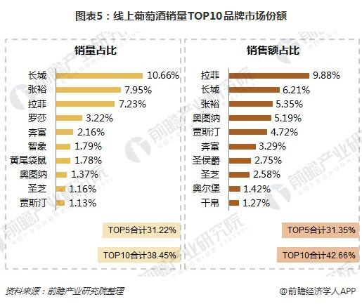 一個行業(yè)的CR4達(dá)到60%以上就可成為一個成熟行業(yè)。葡萄酒行業(yè)碎片化依然嚴(yán)重,但品牌化趨向集中,同時價值驅(qū)動風(fēng)向逐漸成型。2017年,前十大品牌銷量集中度達(dá)38.45%,銷售額集中度達(dá)42.66%。根據(jù)近幾年的數(shù)據(jù),葡萄酒已經(jīng)開始逐年向頭部品牌企業(yè)集中,未來幾年中國葡萄酒行業(yè)格局將經(jīng)歷一個重要的變化。
