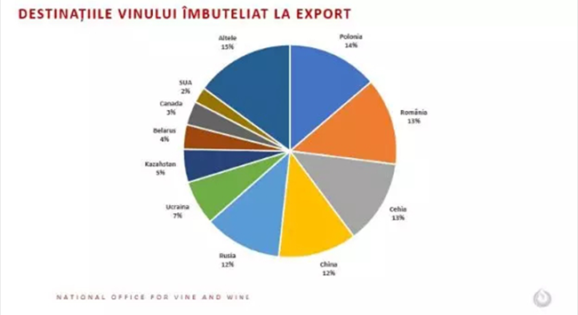 2018-2019年度,中國(guó)以12%的市場(chǎng)份額位居摩爾多瓦瓶裝葡萄酒第四大出口市場(chǎng)。此外,波蘭為14%,羅馬尼亞和捷克同為13%。