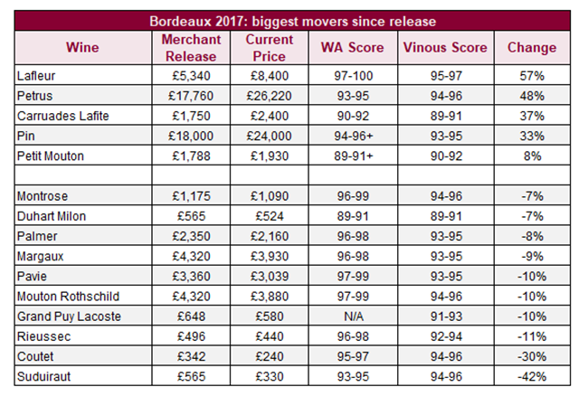 • 波爾多2017年:價格升跌最大的葡萄酒
