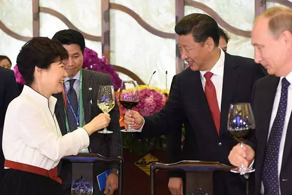 宴會上一團和氣,習大大與彭麻麻與各國的領導親切的交談,整個宴會廳都呈現出一派其樂融融的氣氛。