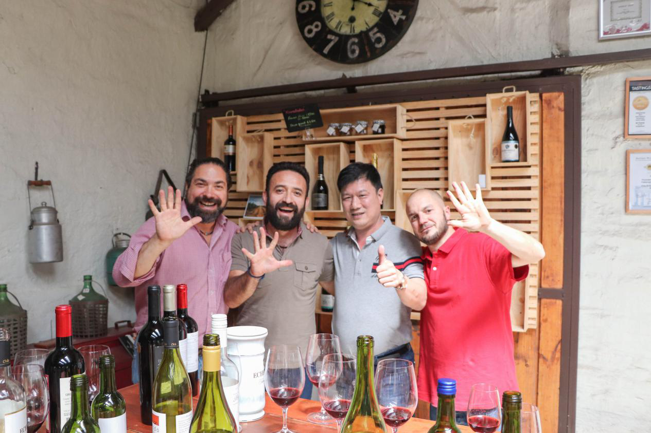 (酒莊莊主Robert先生、Francisco先生設宴接待藍菲酒業董事長莊榮昌先生、執行董事郭紹滿等人)