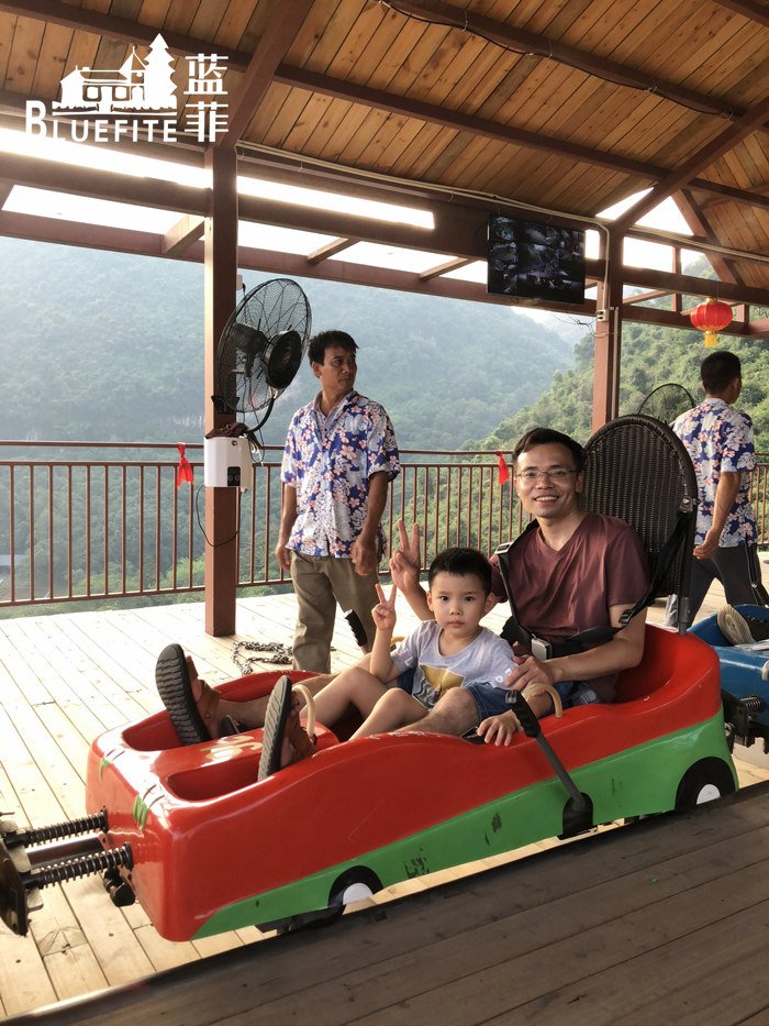當然啦,除了飛龍蹦極,這里還有很多極限活動等著我們來打卡,寶晶宮跑跑卡丁車圓了我們的賽車夢,讓我們親身體驗速度與激情,過一把賽車手的癮;天山滑道帶領我們在森林與喀斯特地貌之中急速穿行,真實還原過山車叢林穿越,快速、刺激而又唯美;坐上天鵝湖滑索,飛越千畝湖面,仿佛乘風前行,將山青水秀、碧波蕩漾的美景盡收眼底......在一輪又一輪驚險刺激的游戲項目中,藍菲伙伴們的工作壓力都得到了盡情的釋放,在美景中返璞歸真,共同沉浸在這質樸而浪漫的世外桃源。