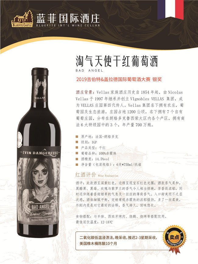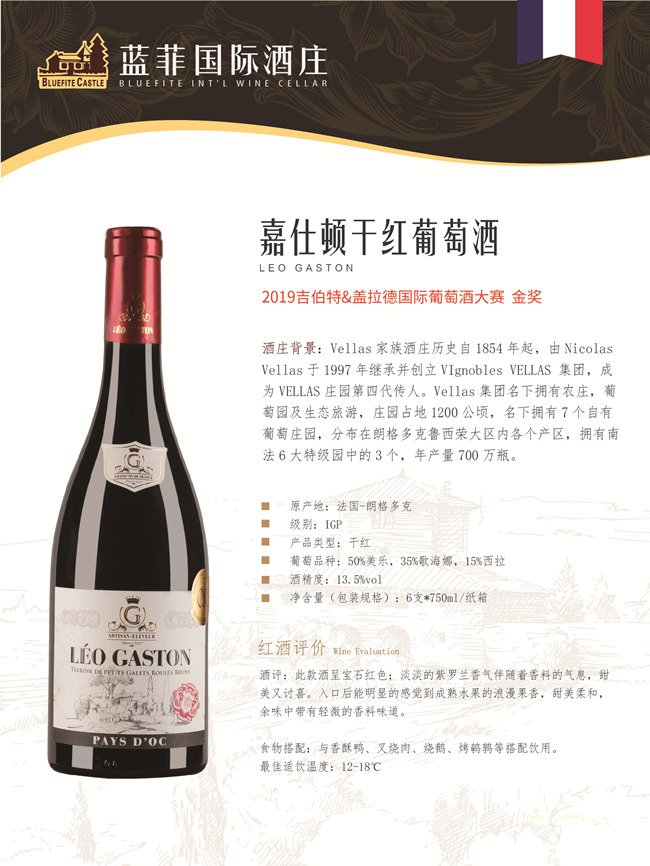 《吉伯特&蓋拉德葡萄酒指南(Gilbert&Gaillard)》一直是法國最權威的葡萄酒指南之一,該雜志由菲利浦·蓋拉德(Phillippe Gaillard)和弗朗索瓦·吉伯特(Fransois Gilbert)兩人創辦于1991年,如今已發展成為全球性的葡萄酒多媒體產業,旗下記者遍布法國、意大利、西班牙、中國和美國。《吉伯特&蓋拉德葡萄酒指南》所有品評過的葡萄酒都是在盲品的條件下進行,采用的是國際流行的100分制體系;品酒記錄及得分會公布在雜志的官網Gilbertgaillard.com上。由此可見Vellas酒莊出品的嘉仕頓干紅葡萄酒、快樂天使干紅葡萄酒以及淘氣天使干紅葡萄酒的風味與實力!